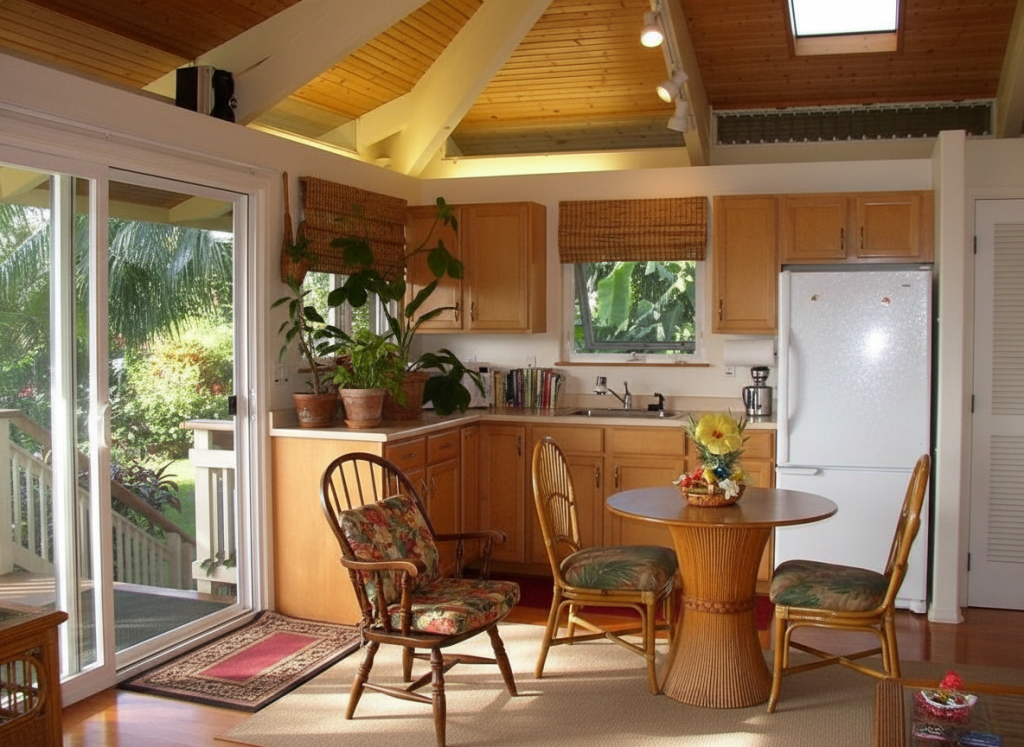 Местом для приготовления вкусных блюд и встреч с друзьями являются домики или беседки с летней кухней — отдельные небольшие постройки или пристройки к основному дому. Такой тип объектов защищает от осадков, при этом характеризуется уютом и возможностью проводить больше времени на открытом воздухе.